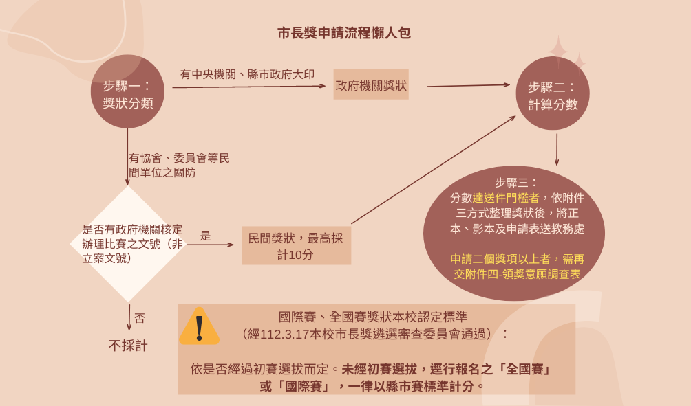 一、 本校111學年度應屆畢業生市長獎給獎作業細則依112年3月17日本校畢業生市長獎遴選審查委員會通過,辦法內黃底文字為與往年不同之處,綠底文字則請特別留意。